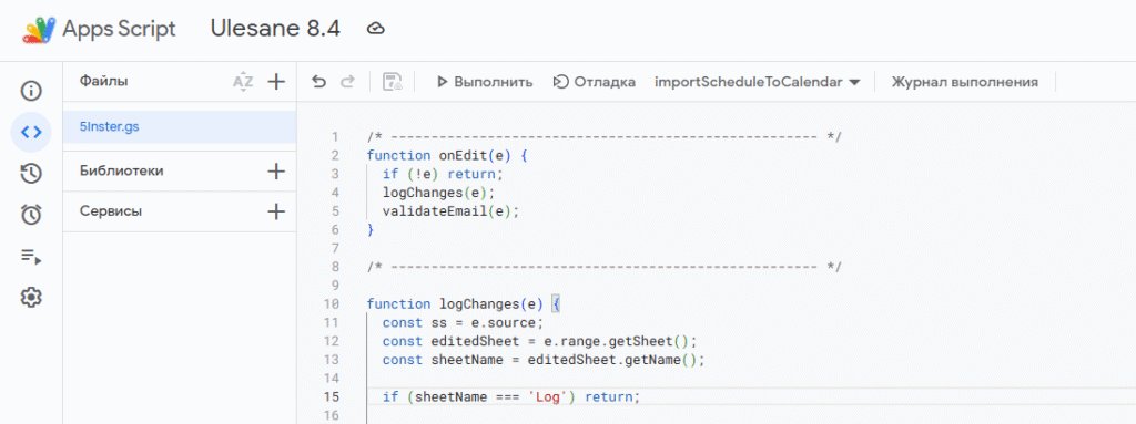 let logSheet = ss.getSheetByName('Log');
