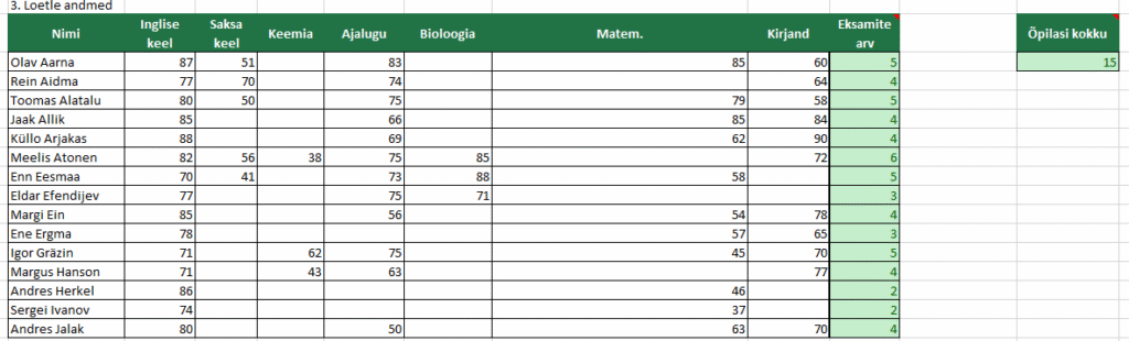 Vahekokkuvõted, valideerimine “Autod” ja sortimise ja filtreerimise kordamine “Osakonnad”